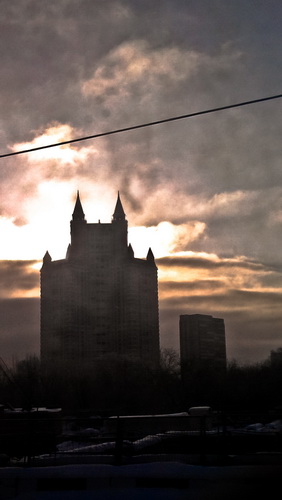 Снова навалило снега, снова морозы. На балконе сугроб, на перилах снежная горка: